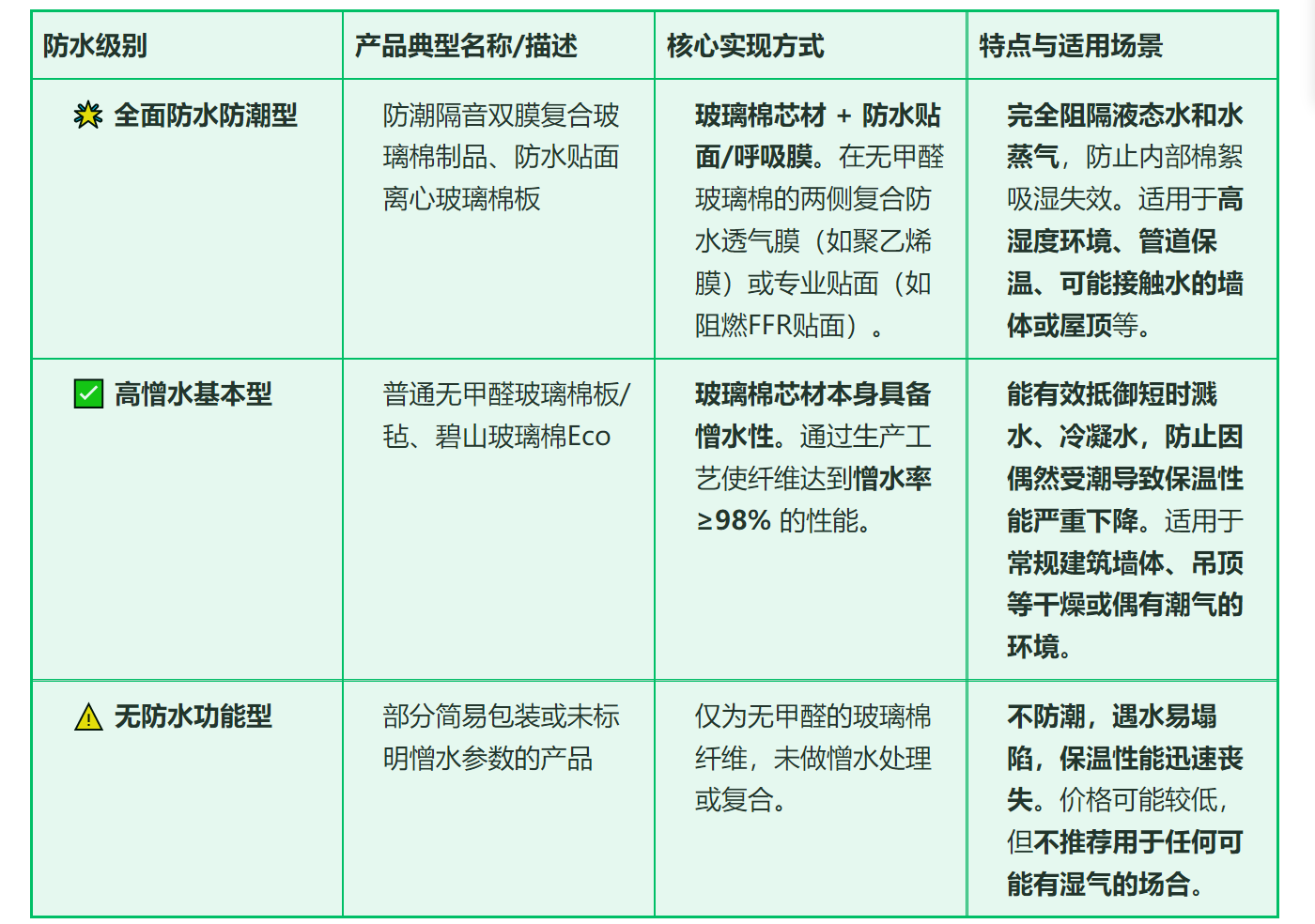 對于無甲醛絕熱玻璃棉是否防水,答案是:它通常具有良好的“憎水性”或“抗濕性”,但要實現完全意義上的“防水”,往往需要借助額外的貼面或復合結構。